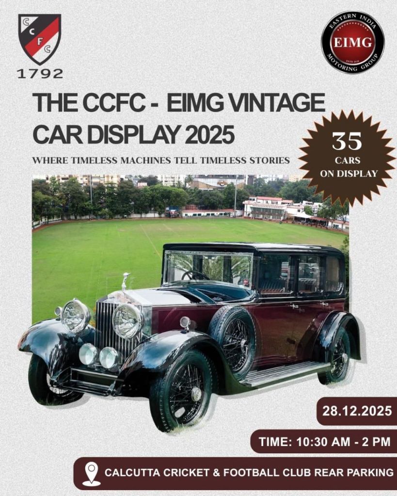 On Sunday, December 28, Calcutta Cricket and Football Club (CC&FC) set up a special date with heritage motoring. This winter Sunday morning was made even more charming with the presence of 35 fabulous heritage vehicles, owned by Eastern India Motoring Group (EIMG) members, that were showcased at the CCFC – EIMG Vintage Car Display 2025. The CC&CC members and their guests were in for a visual treat as the selection of cars on display made their jaws drop in awe and admiration. This was the first time CC&FC joined hands with EIMG for curating this special heritage vehicle display and hopefully this will pave the path for this tradition to follow in the years to come. A thanksgiving ceremony followed by a sumptuous beer luncheon wrapped up the last Sunday afternoon of 2025 in great style and elegance.