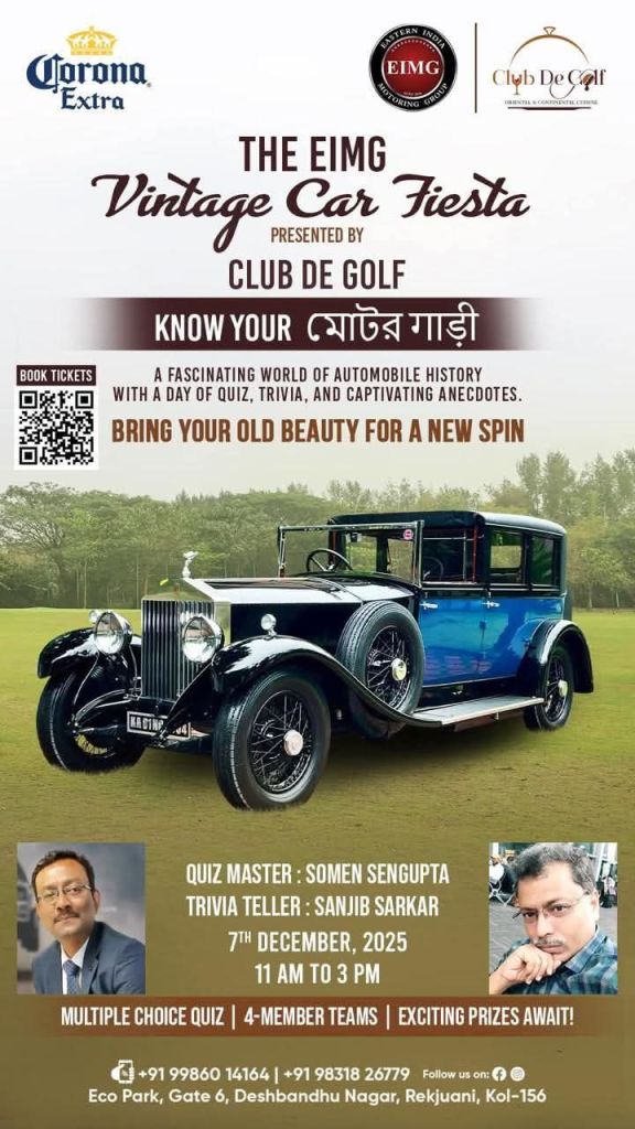 Now in its fifth year, the EIMG Vintage Car Fiesta 2025 was presented by Club De Golf and organised by Eastern India Motoring Group. The line up for the EIMG Vintage Car Fiesta 2025 included as many as 35 rare heritage four wheelers. The Club De Golf is located inside the picturesque New Town Golf Club, where the heritage vehicles were displayed for a vintage rendezvous with their Club members and visitors. Later in the afternoon, the thanksgiving ceremony was followed by a beer luncheon that was enjoyed by all the members. A fascinating auto quiz and trivia session made all the EIMGians put on their thinking cap. It was brilliantly organized by quiz master Somen Sengupta and trivia narrator Sanjib Sarkar which proved to be a great learning experience for everyone present as many unknown trivia and facts about cars and Kolkata were revealed.