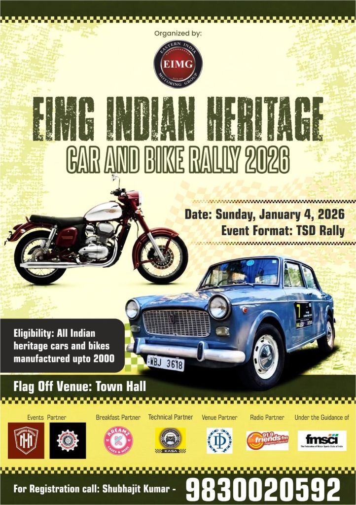 Eastern India Motoring Group (EIMG) jointly with Kolkata Automotive Sports Association (KASA), organized the EIMG Indian Heritage Rally 2026, for the third consecutive year. Around 27 Indian heritage cars participated in this rally making this the biggest event of its kind. The event also received multiple entries from All Lady Teams. The EIMG Indian Heritage Rally 2026 was flagged off from the Town Hall on Sunday, January 4, 2026 at 10.00 AM. Mr. Debasish Kumar, Honourable MLA & a member of Mayor-in-Council (Kolkata Municipal Corporation) was present at the flag off ceremony as the Chief Guest. He was joined by Mr. Shrivardhan Kanoria, Founder & President (EIMG) and Mr. Swapan Kumar Lahiri, Senior Committee Member who flagged off the bevy of Indian Heritage beauties. The rally covered a distance of around 35 kilometres culminating near Maddox Square. The prize distribution was held at Dalhousie Institute that very evening which was followed by cocktail and dinner. This rally has been specifically conceived by EIMG Secretary Mr. Shubhajit Kumar to address the general apathy displayed by other motoring organizations towards the Indian heritage vehicles. The EIMG Indian Heritage Rally 2026 aimed to not only celebrate the timeless charm of Indian heritage automobiles but also paid homage to the enduring spirit of Indian motoring culture. As participants navigated through the scenic route, they not only reminisced about the glory days of automotive design but also embraced the camaraderie that united enthusiasts of all generations.