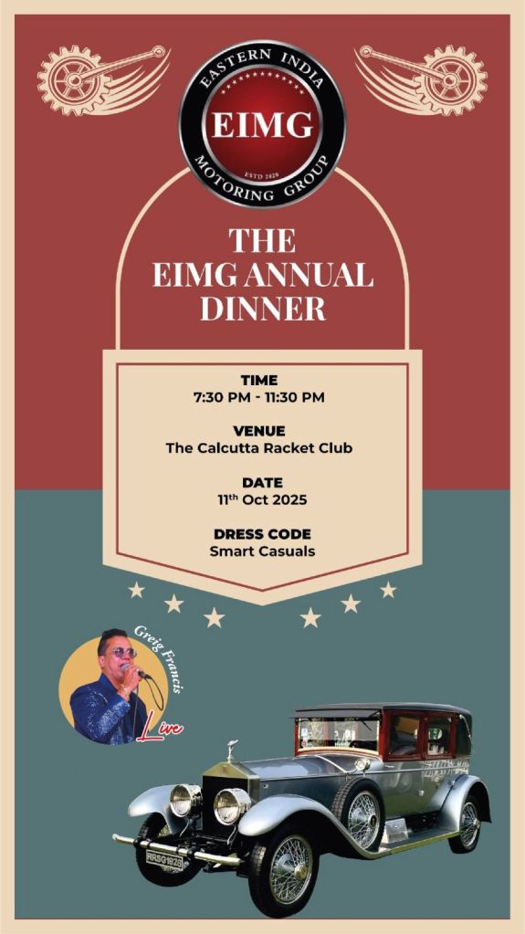 Eastern India Motoring Group (EIMG) kicked off the Heritage Vehicle Season 2025-26 with its Annual Dinner on Saturday, October 11, 2025. Similar to the past few years, The Calcutta Racket Club was chosen as the venue for the annual gala. Founded in 1793, The Calcutta Racket Club is one of the oldest squash clubs in the world, and the first in the subcontinent along with being one of the oldest Clubs of any kind in India, making it a perfect choice for the EIMG season opener. Around 85 EIMG members were present at the event. EIMG Founder & President Mr. Shrivardhan Kanoria delivered the inaugural address and extended a warm welcome to all the EIMG members present. This was followed by the introduction of the EIMG Committee comprising Mr. Swapan Kumar Lahiri (Governor), Mr. Avik Naha (Vice President), Mr. Shubhajit Kumar (Secretary), Mr. Sumit Periwal (Treasurer) and Mr. Joydip Sur (Press Attaché). Later, EIMG Secretary Mr. Shubhajit Kumar announced the pipeline of events planned by EIMG for the upcoming heritage vehicle season. The evening concluded with delicious dinner, cocktails and some great music by Greg Francis.